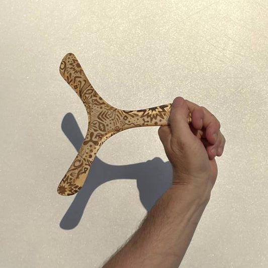 Laser-Etched Natural Deco Tri-Rang Boomerang